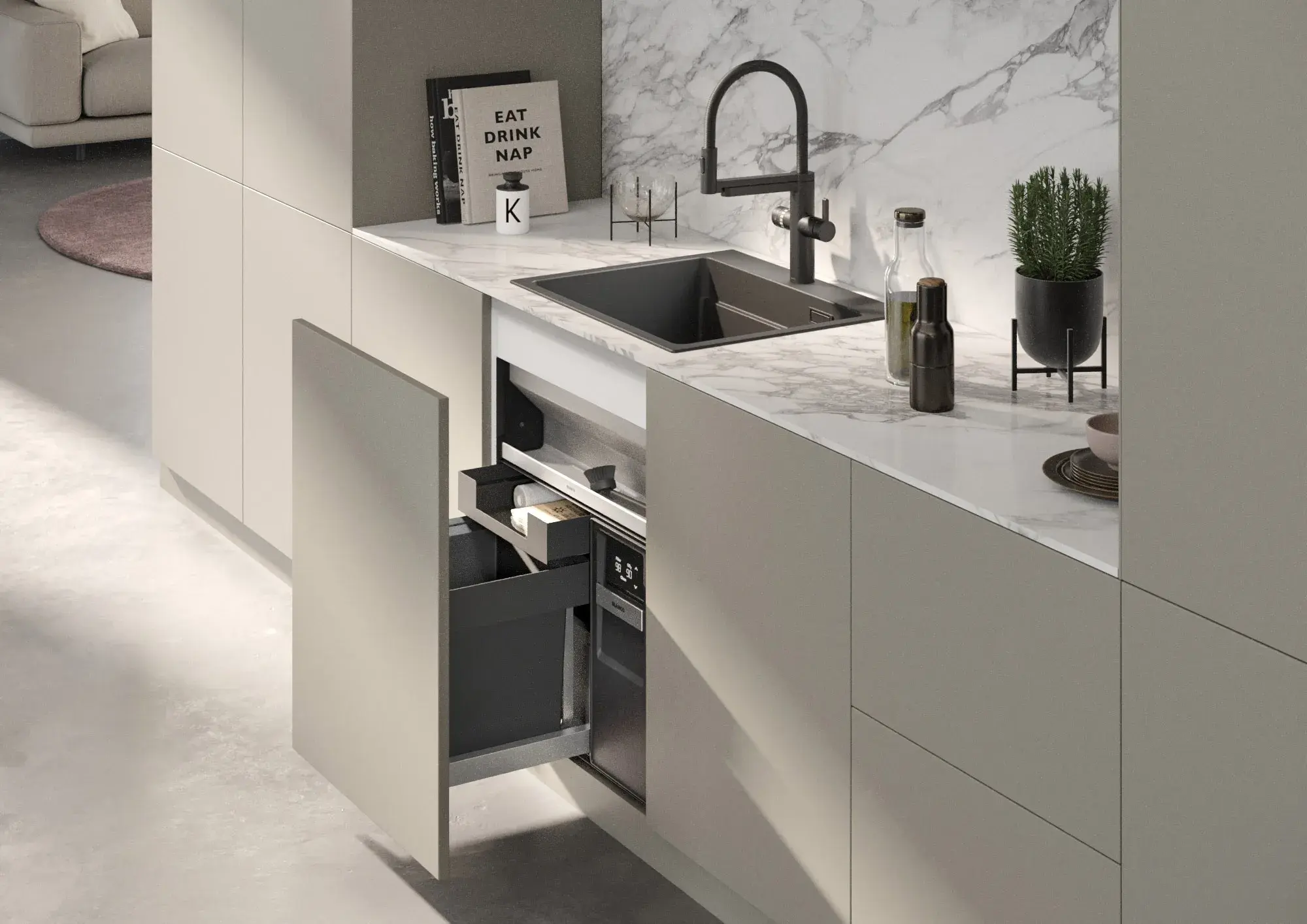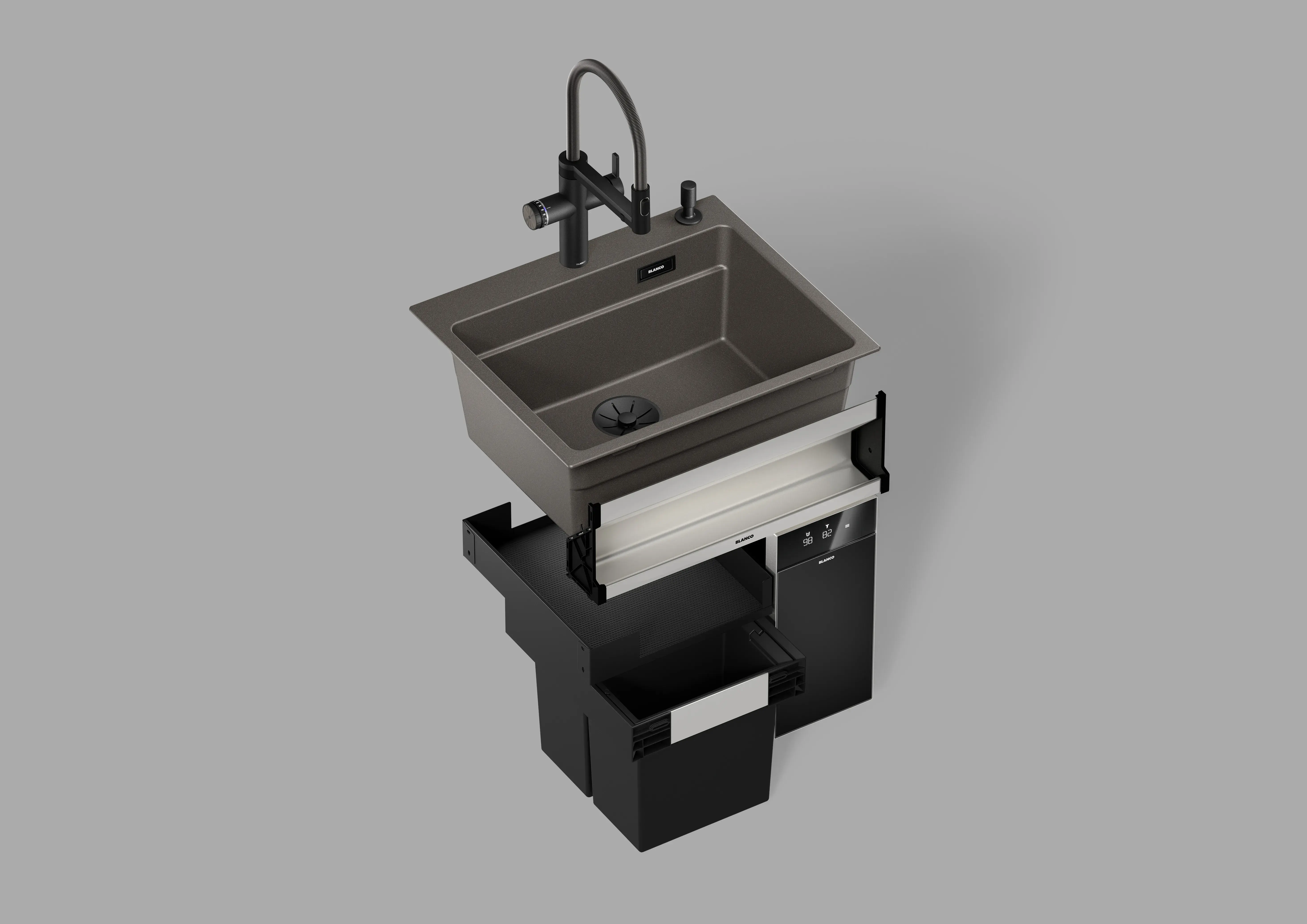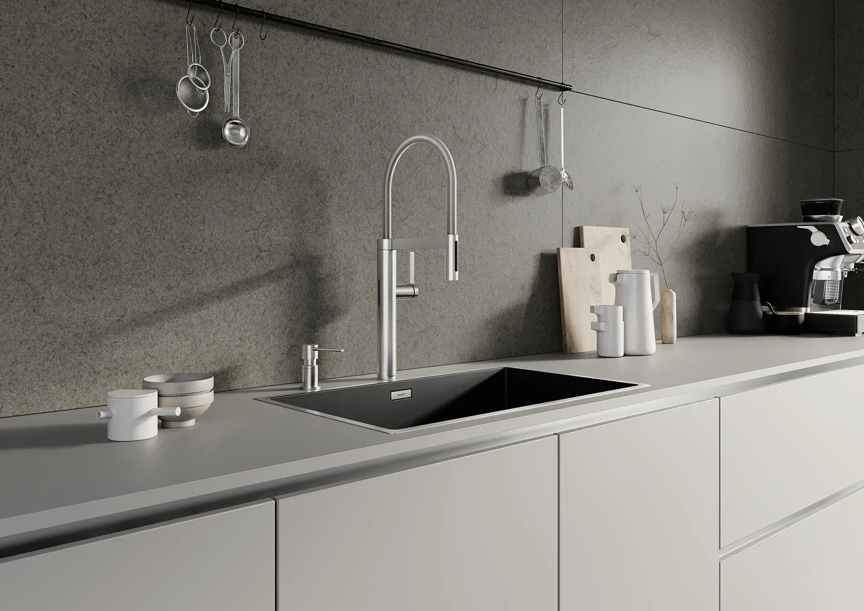 Im Mittelpunkt der Küche: der Wasserplatz. Trinken. Vorbereiten. Reinigen. Das alles ist in der BLANCO UNIT perfekt vereint. Die BLANCO UNIT ist eine Einheit am Wasserplatz. Sie macht das Leben leichter, rationeller und ist zudem stilvoll gestaltet. Integrieren Sie in Ihrer Küche eine in sich besondere, abgestimmte Lösung, die Sie im Alltag bei der Nutzung von Armatur, Spüle, Abfall- & Organisationssysteme optimal unterstützt. Entdecken Sie das umfassende BLANCO Sortiment sowie das einzigartige Konzept der BLANCO UNIT. Neu und besonders innovativ: das Wassersystem BLANCO CHOICE in Kombination mit der BLANCO UNIT-App.