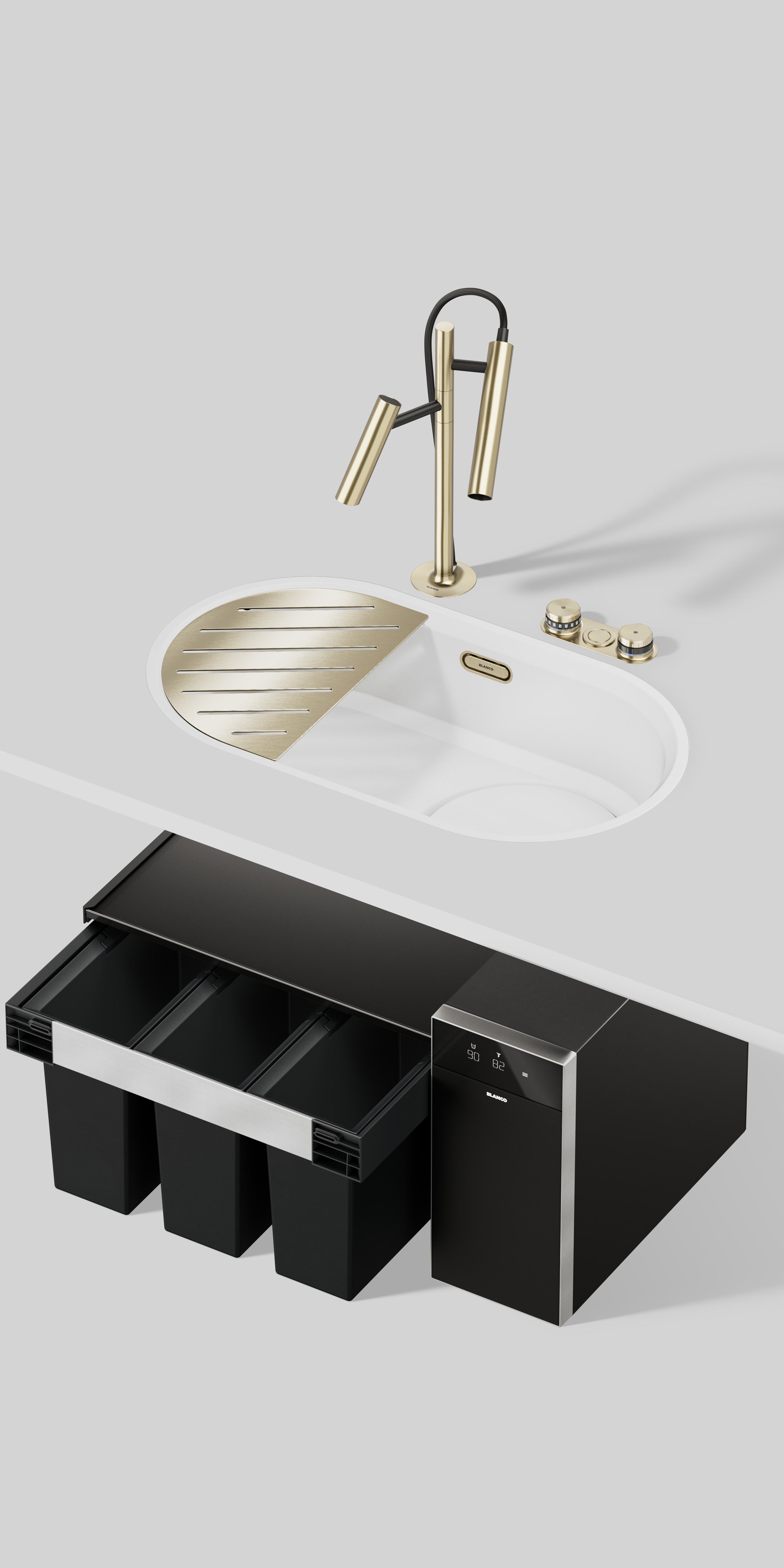 ✓ Ein völlig neu interpretiertes Armaturen-Design, das alle Blicke auf sich zieht: als klassische Küchenarmatur LUNEOO-S für Leitungswasser kalt und warm oder als DRINK.SYSTEM CHOICE LUNEOO-S für gefiltertes, gekühltes Wasser – still, medium, sprudelnd oder kochend heiß. In fünf verschiedenen Farben erhältlich: Edelstahl gebürstet, Schwarz Matt, Satin Dark Steel, Satin Gold und Satin Platinum.